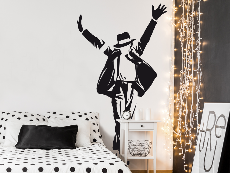 O autocolante « King of the Pop » é recortado na forma do desenho, sem qualquer contorno branco ou transparente para dar um efeito mais autêntico, aproximando-se muito de uma pintura real na parede.