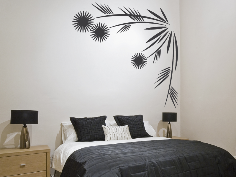 O autocolante « Ângulo Flores Sol » é recortado na forma do desenho, sem qualquer contorno branco ou transparente para dar um efeito mais autêntico, aproximando-se muito de uma pintura real na parede.