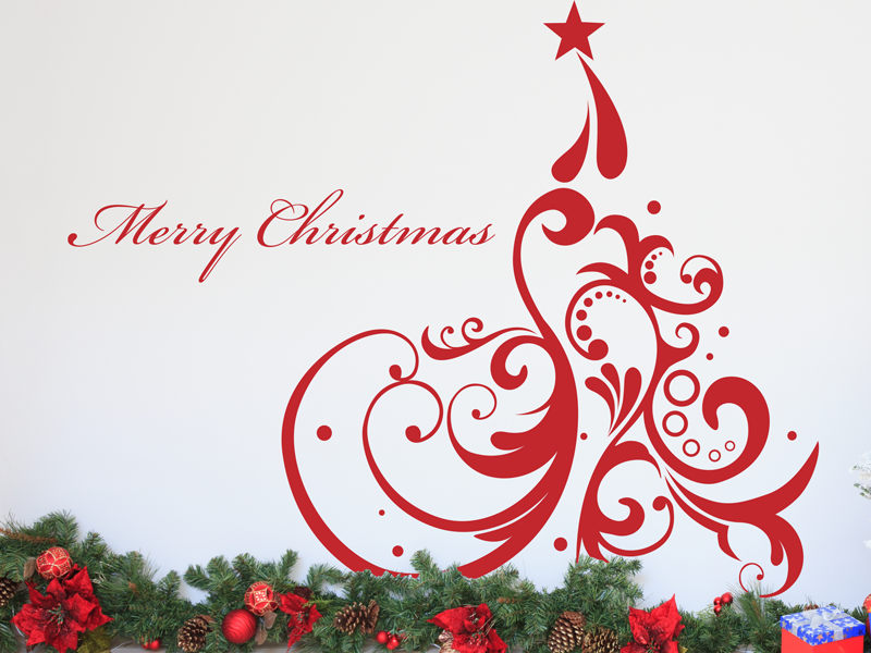 O autocolante « Árvore de Natal Luxo» é recortado na forma do desenho, sem qualquer contorno branco ou transparente para dar um efeito mais autêntico, aproximando-se muito de uma pintura real na parede.