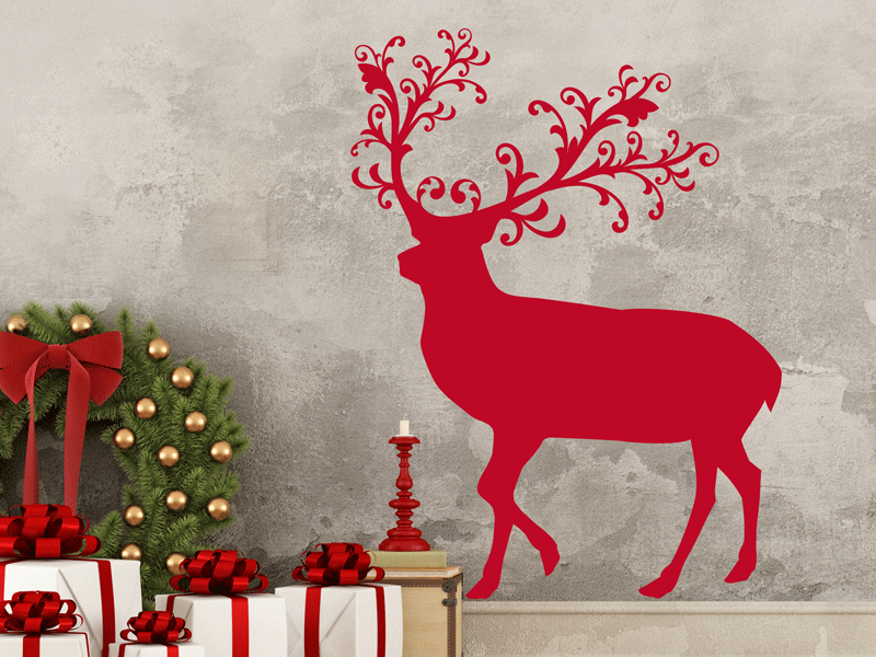O autocolante decorativo « Rena de Natal» tem uma excelente resistência e durabilidade. Usamos um vinil de alta qualidade com acabamento mate especialmente concebido para o uso na decoração.