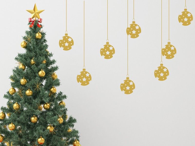 O autocolante « Pack 8 Bolas Estrelas de Natal» é recortado na forma do desenho, sem qualquer contorno branco ou transparente para dar um efeito mais autêntico, aproximando-se muito de uma pintura real na parede.