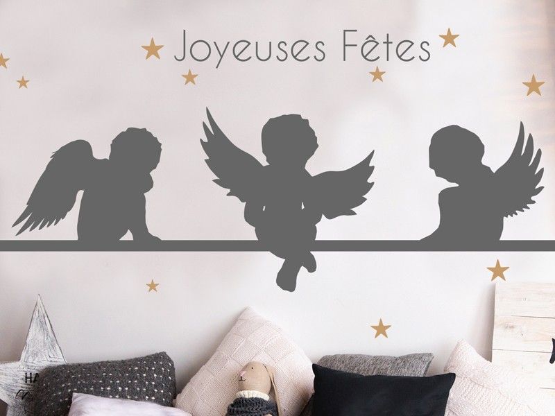 O autocolante « Anjos de Natal Estrelas» é recortado na forma do desenho, sem qualquer contorno branco ou transparente para dar um efeito mais autêntico, aproximando-se muito de uma pintura real na parede.