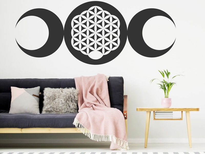 O autocolante « Luas flores de Vida » é recortado na forma do desenho, sem qualquer contorno branco ou transparente para dar um efeito mais autêntico, aproximando-se muito de uma pintura real na parede.